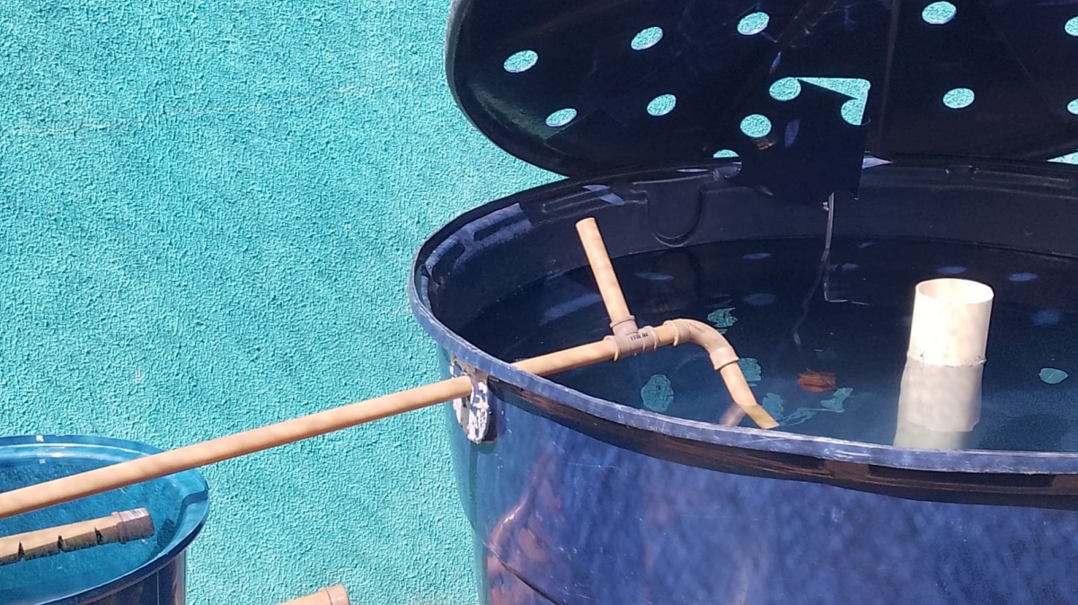 maneira sustentável pelas próprias famílias. A água dos peixes é reutilizada