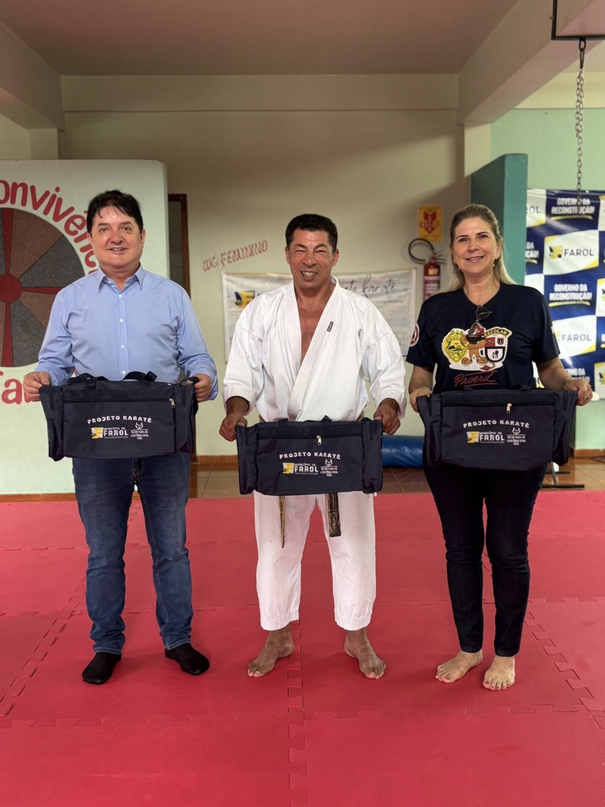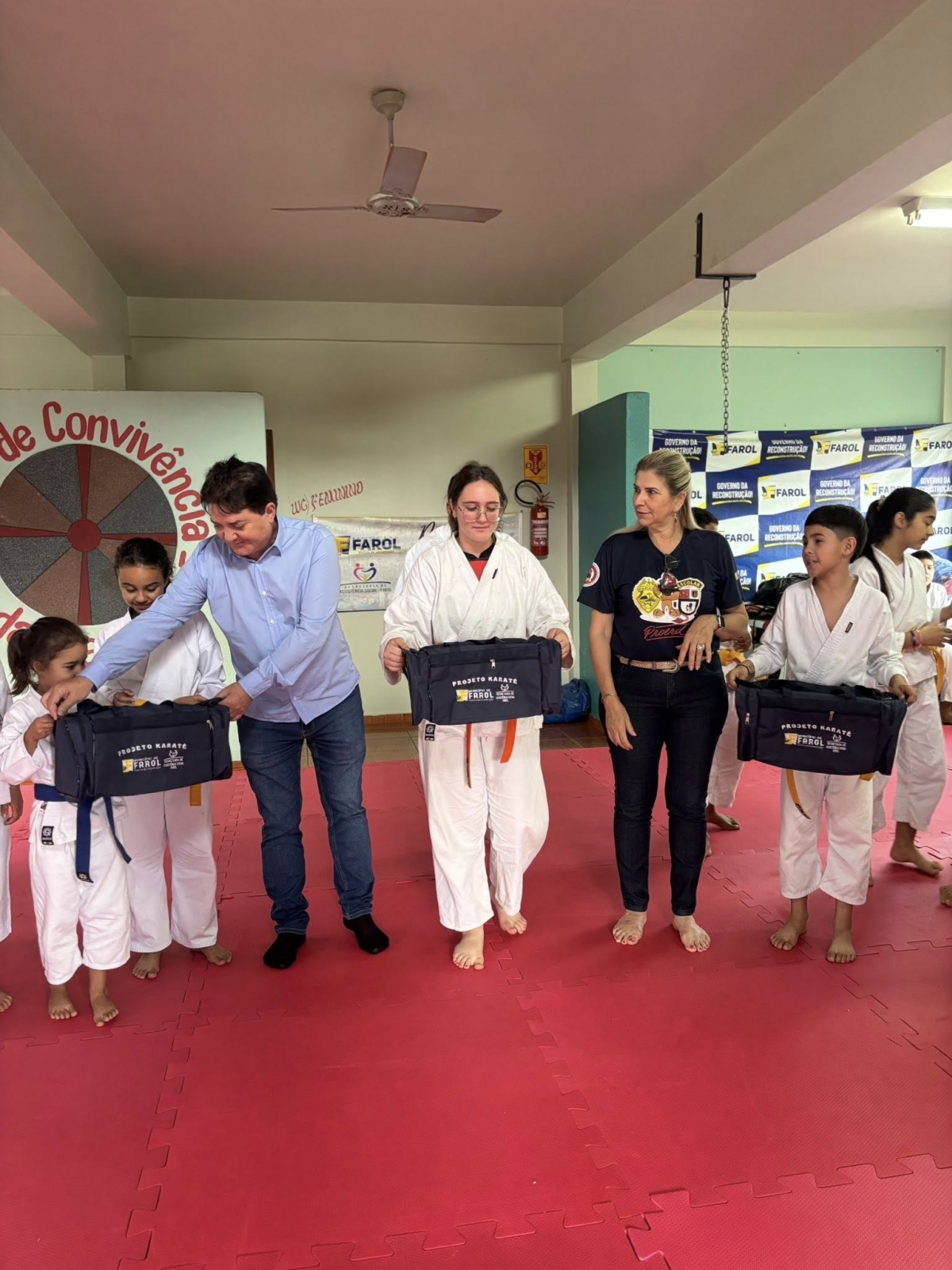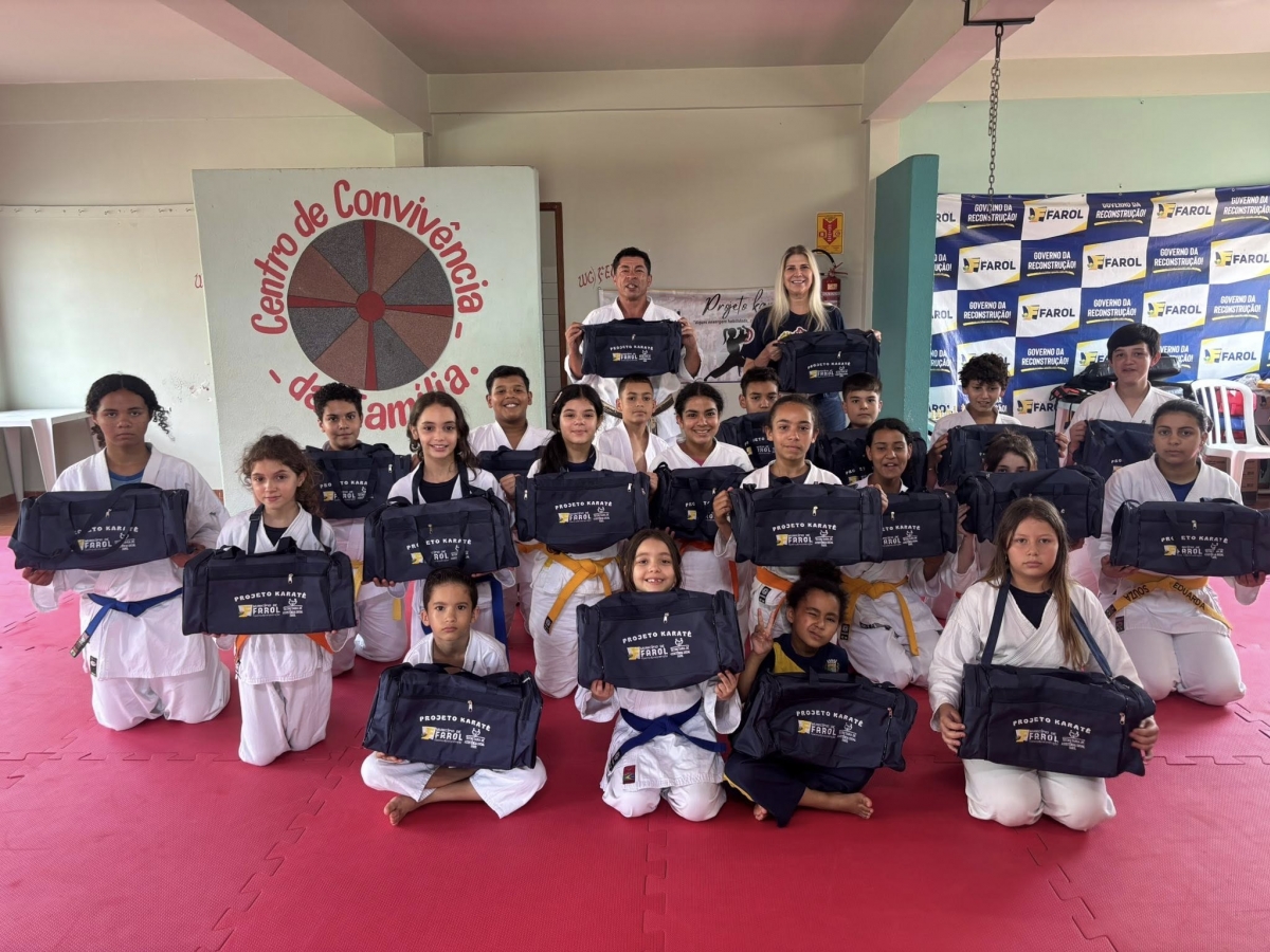 uniformes kimonos padronizados. O Projeto Karatê é mantido pelo Município de