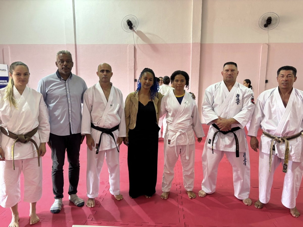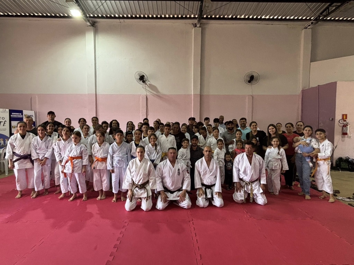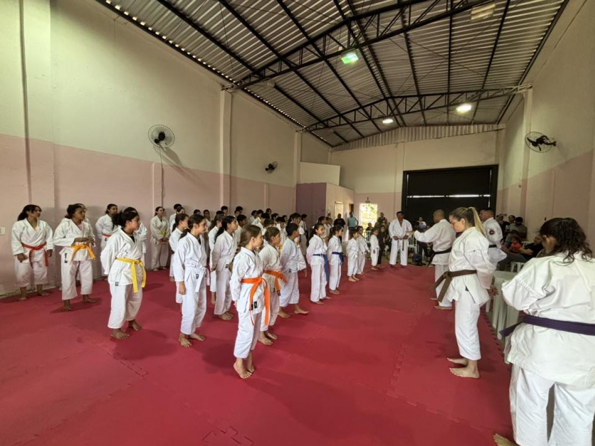 Alunos do Projeto Karatê contaram com exame de faixa e ganham mochilas esportivas