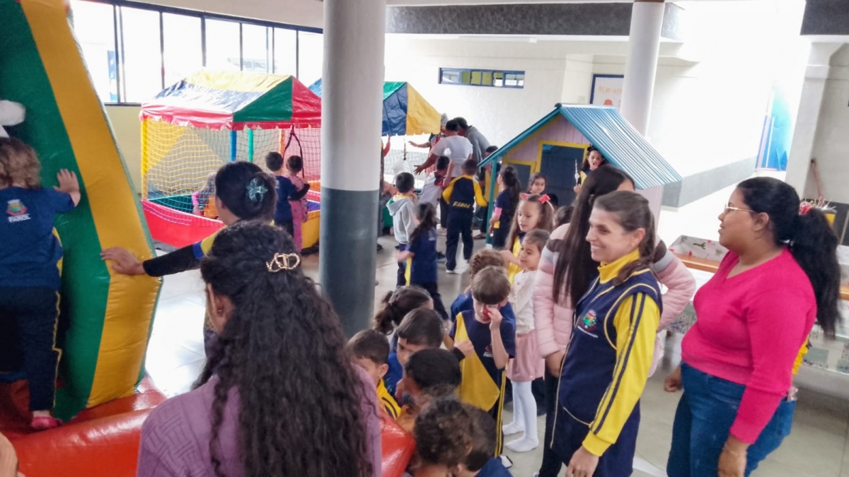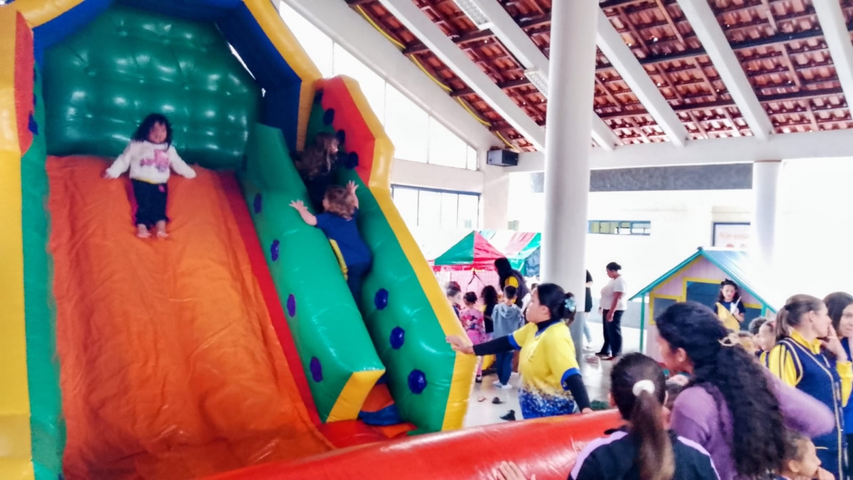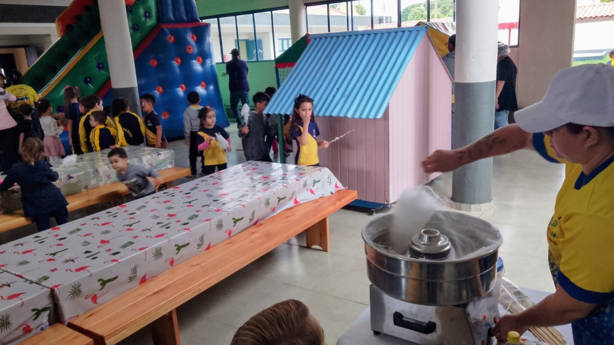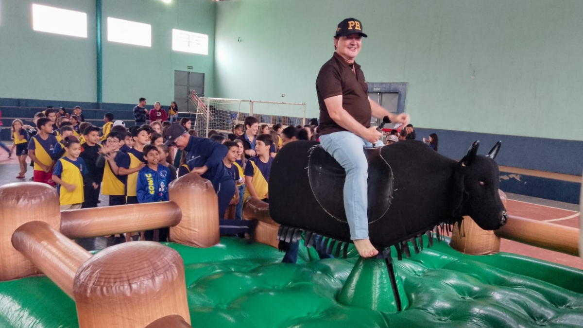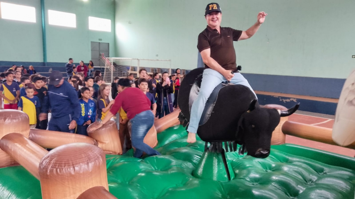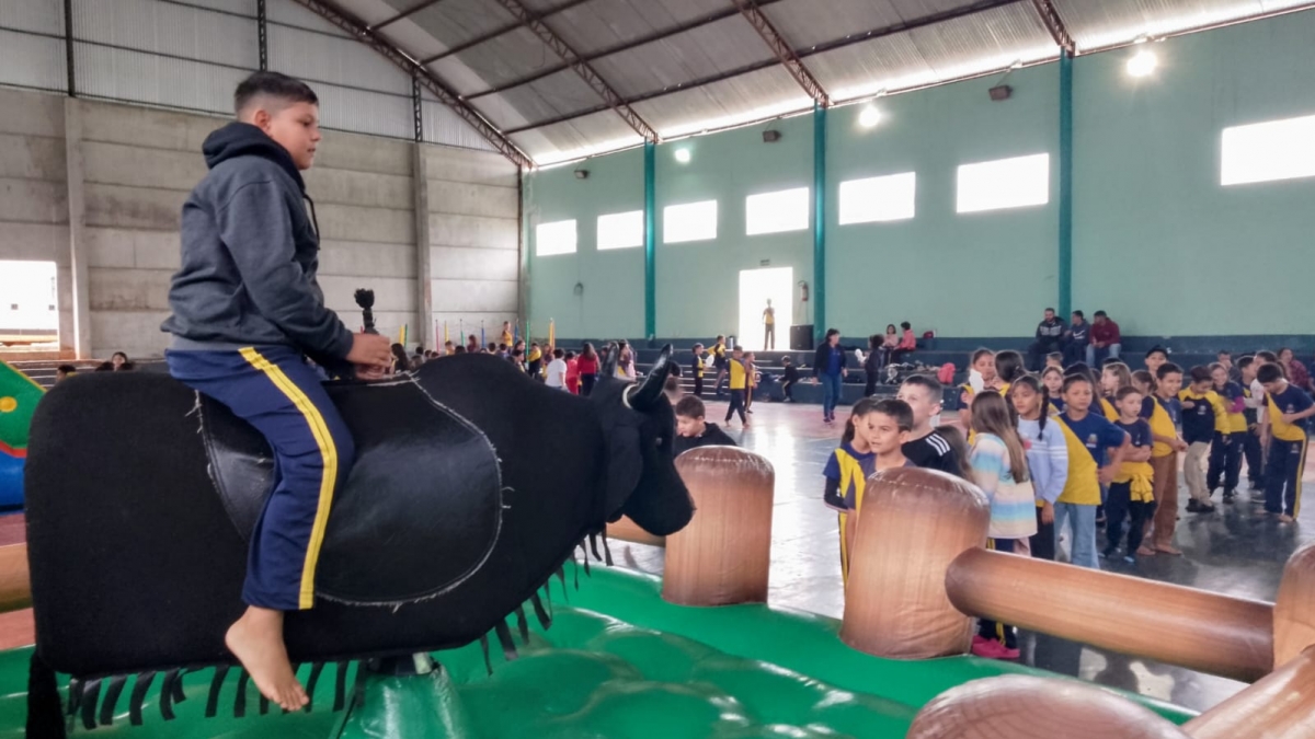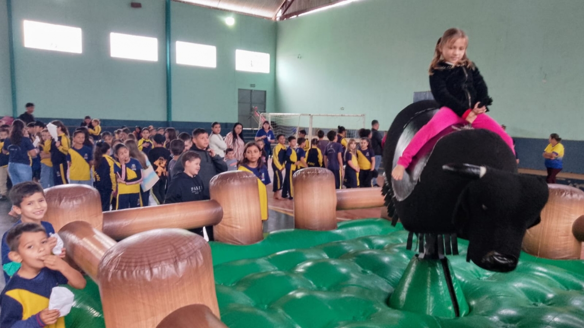 Escola Municipal Casimiro de Abreu, que contou com touro mecânico e também no CMEI