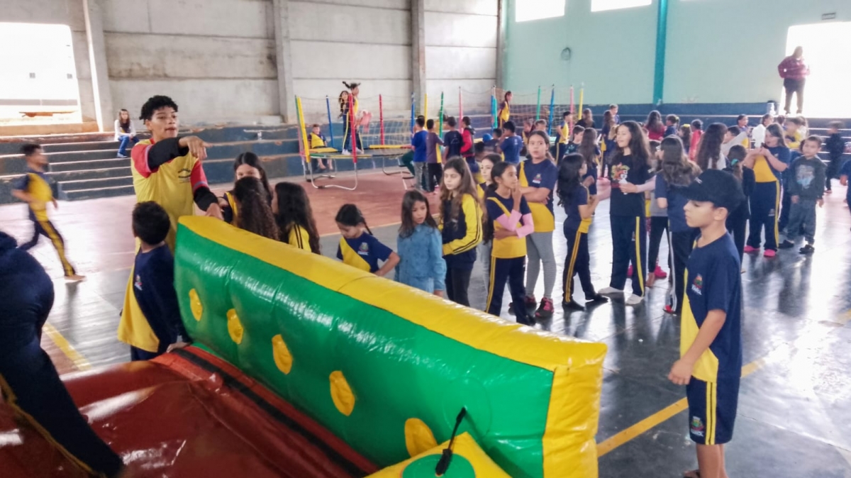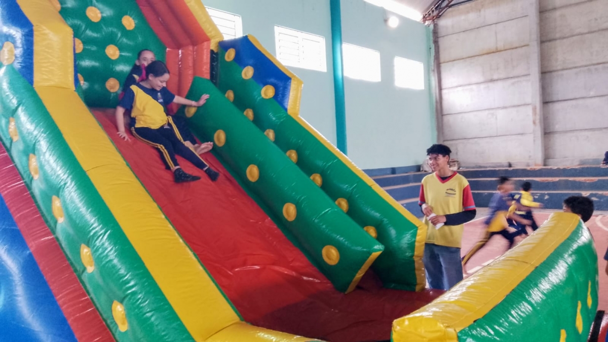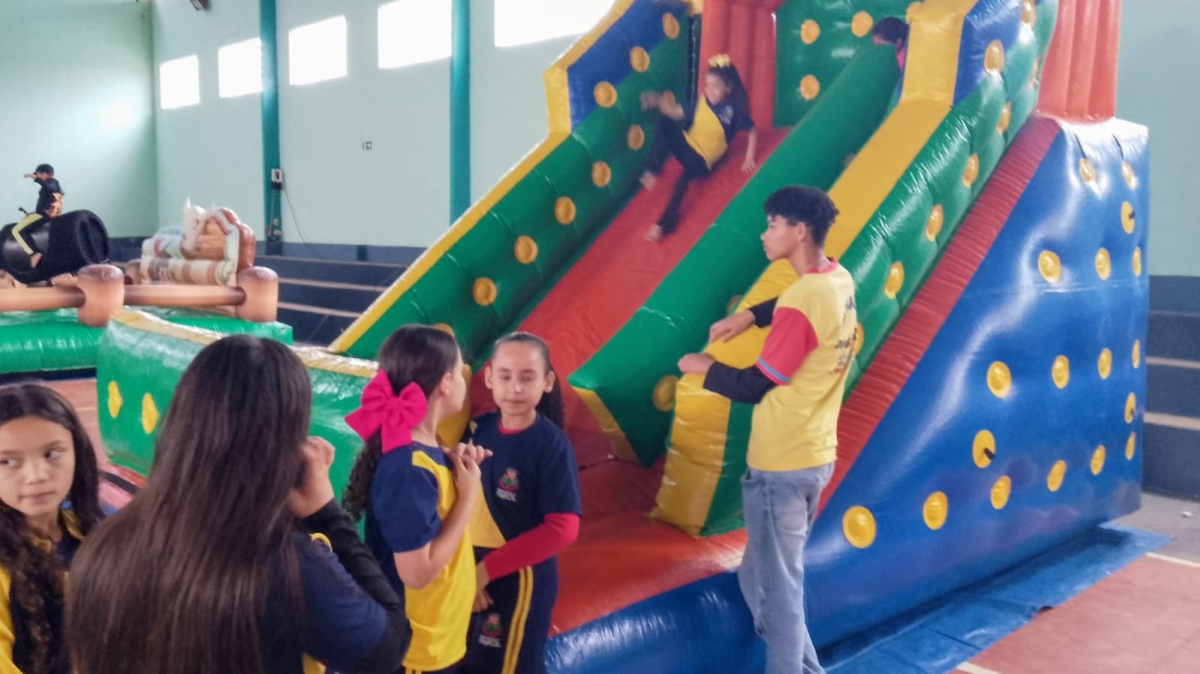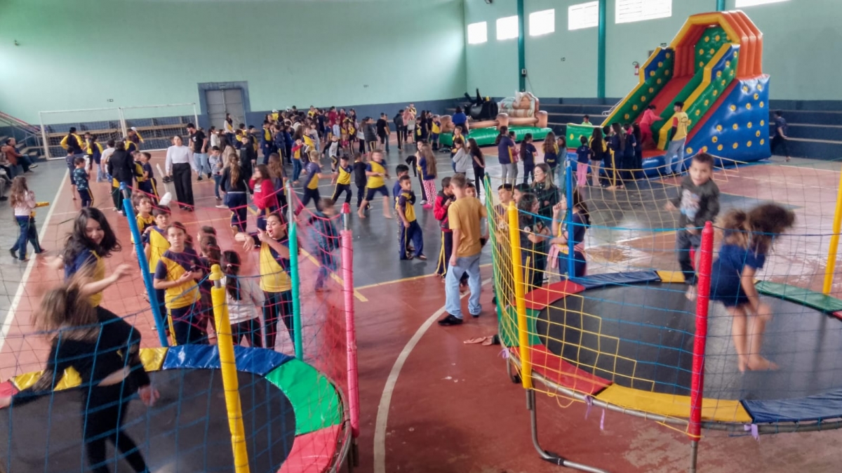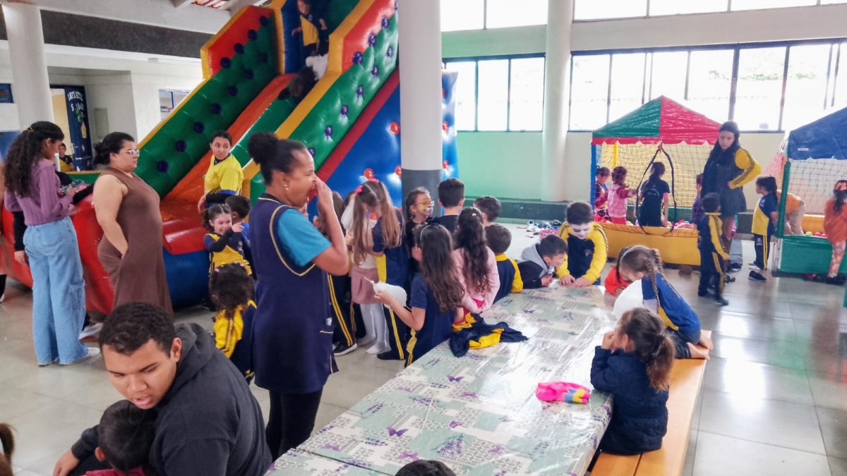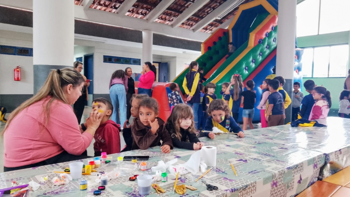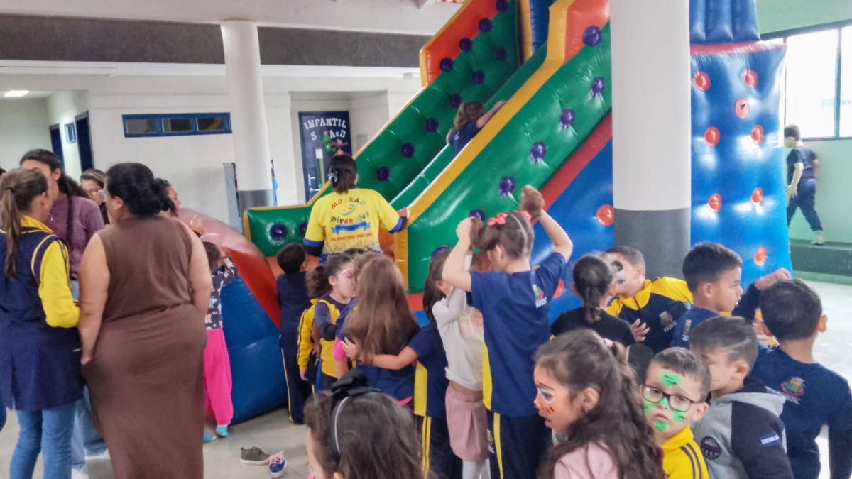 Escola Municipal Casimiro de Abreu, que contou com touro mecânico e também no CMEI