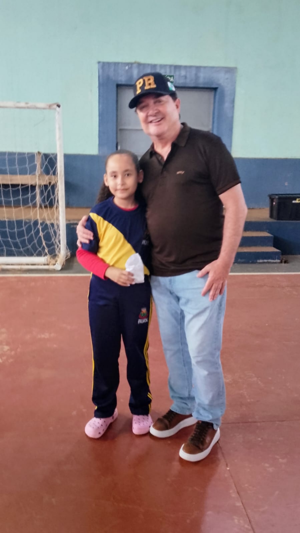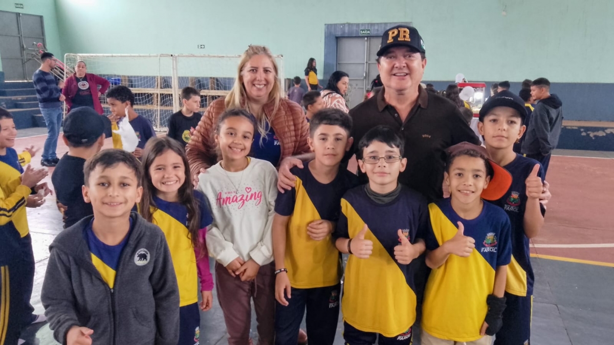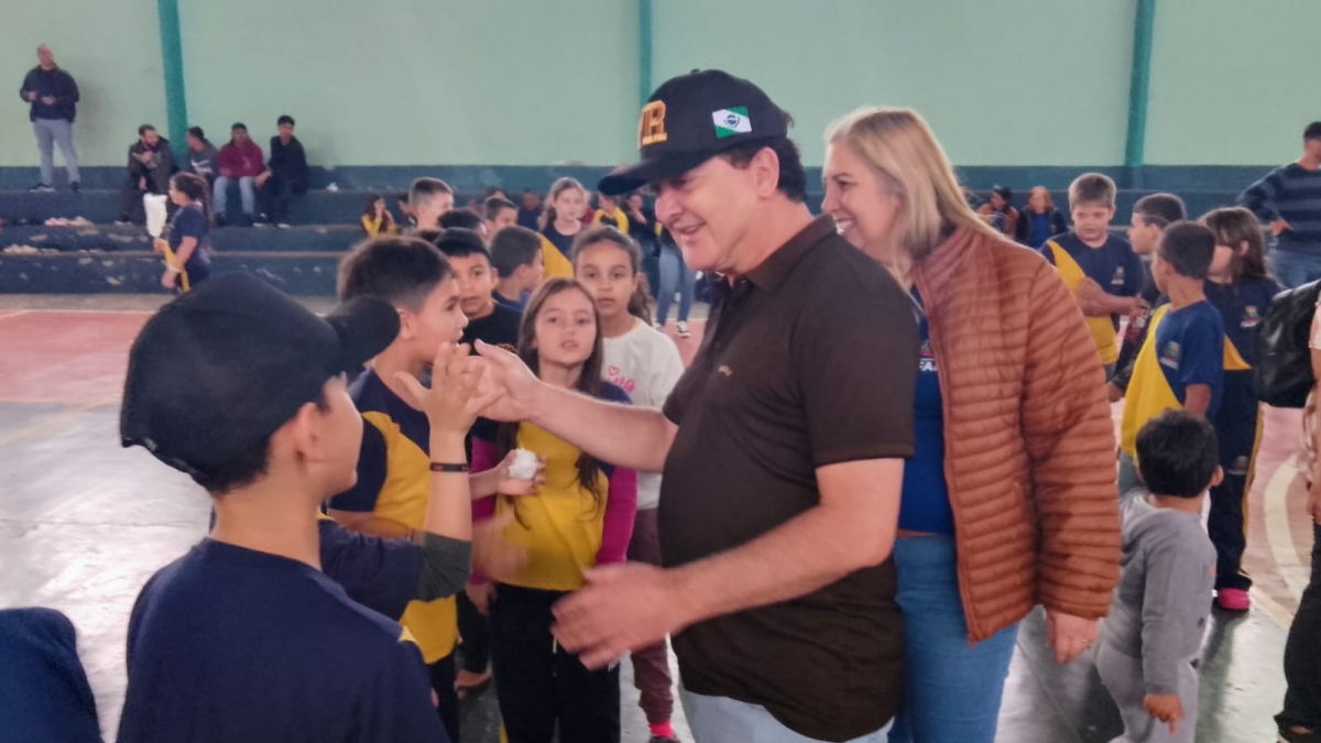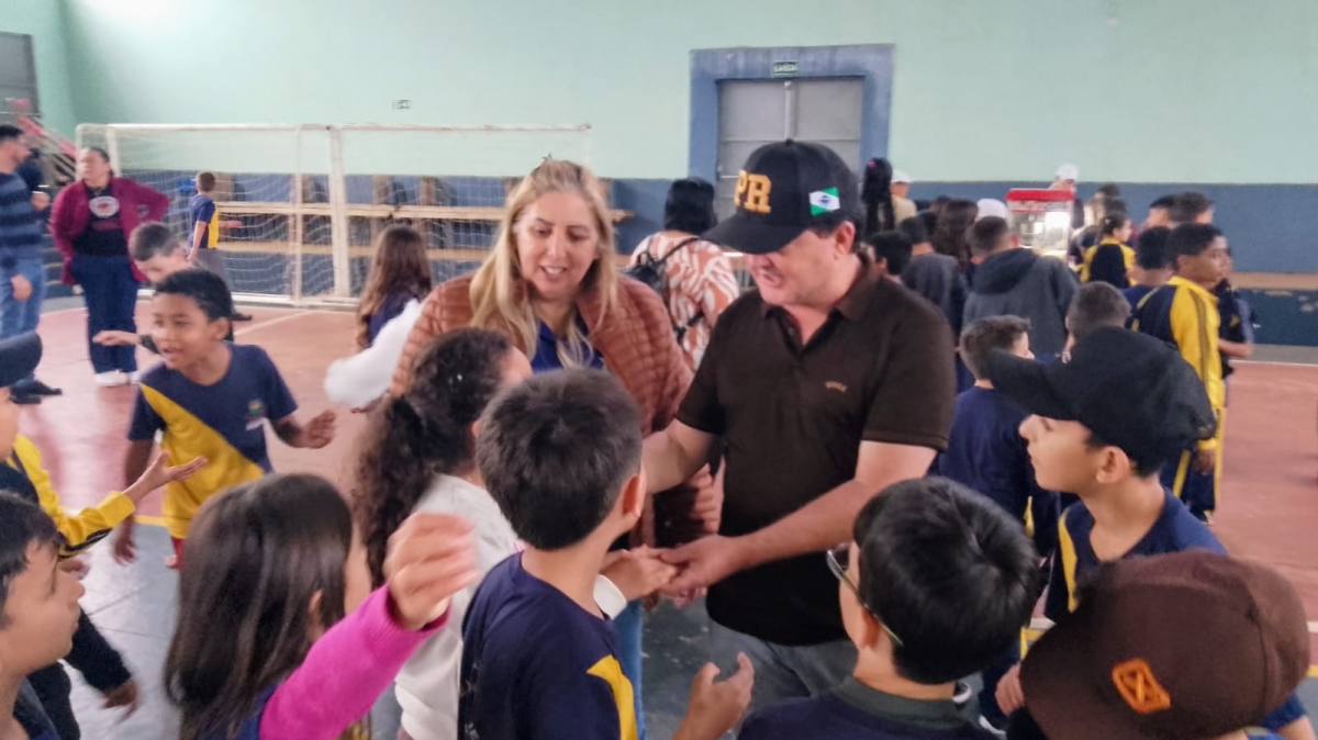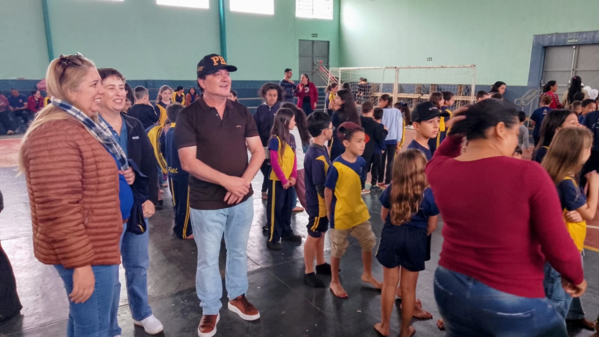 de secretários municipais e diretores, quando parabenizou as crianças pelo seu